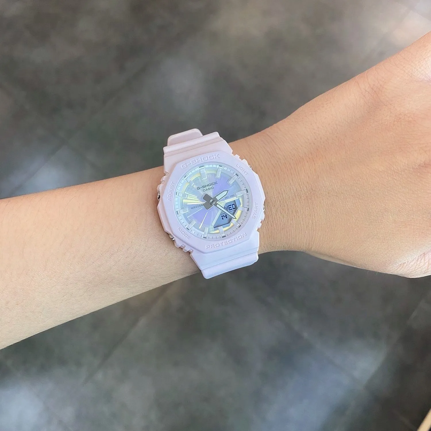 این ساعت با رنگبندی صورتی و طراحی مدرن، گزینهای مناسب برای استایل خیابانی و تابستانی است. جلوه درخشان صفحه و شاخصهای براق، جلوهای شیک به استایل شما اضافه میکند، در حالی که قاب و بند با بافت مات، تعادل و وقار خاصی به ظاهر ساعت میبخشند. GMA-P2100PC-4ADR برای استایلهای کژوال، ورزشی و روزمره کاملاً مناسب است و جلوهای برجسته به استایل فردی شما میدهد.