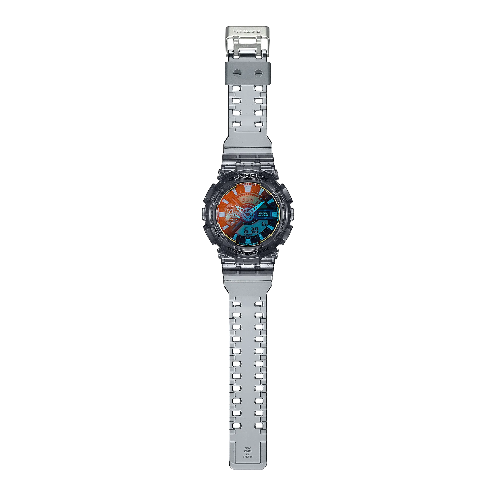 مدل GA-110TLS-8ADR در گروه رنگ‌بندی خاکستری نیمه‌شفاف با تون‌های گرم و ساحلی قرار می‌گیرد. رنگ بدنه و بند حالتی ملایم و مدرن دارد و در کنار صفحه رنگین، تعادل خوبی بین سادگی و جسارت ایجاد می‌کند. تغییر رنگ صفحه ساعت با زاویه دید متفاوت، جلوه‌ای پویا به ساعت می‌بخشد و آن را از مدل‌های معمولی جی‌شاک متمایز می‌کند. این ویژگی باعث می‌شود ساعت در نورهای مختلف، جلوه‌ای تازه و غیرتکراری داشته باشد.