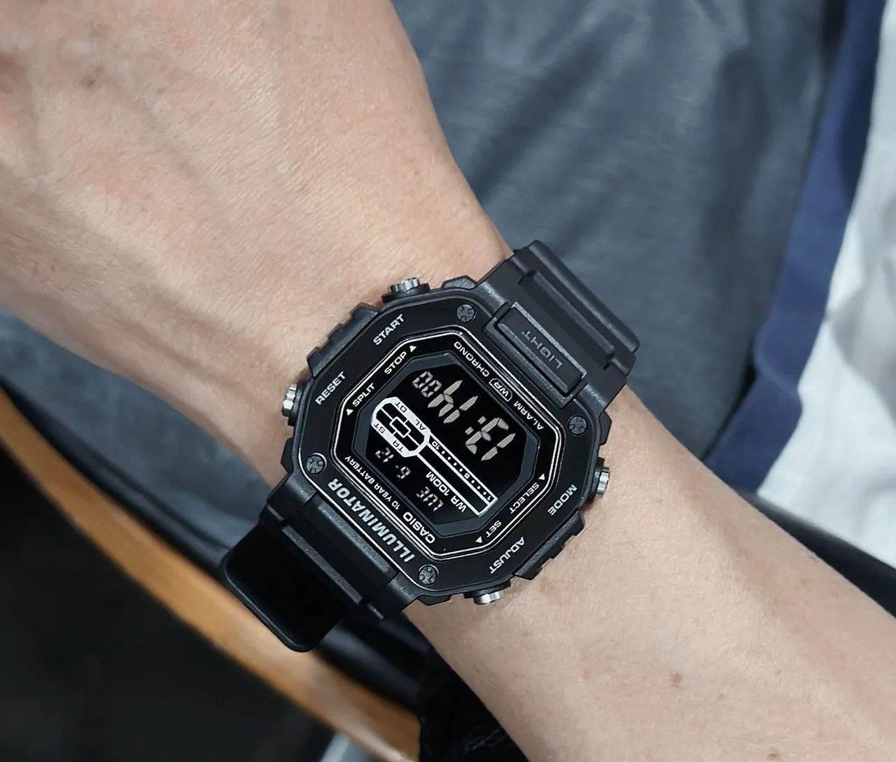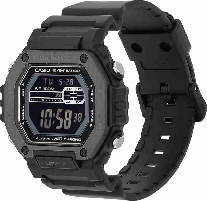در مقایسه با ساعتهای دیجیتال ساده، مدل MWD‑110HB‑1BVDF با ظاهر کاملاً مشکی و طراحی برجستهتر قاب، جلوهای حرفهایتر و اسپرتتر ارائه میدهد. همچنین امکانات کامل مانند Dual Time، تایمر شمارش معکوس و آلارم چندمنظوره باعث میشود این مدل نسبت به بسیاری از ساعتهای دیجیتال همرده ارزش بیشتری داشته باشد.