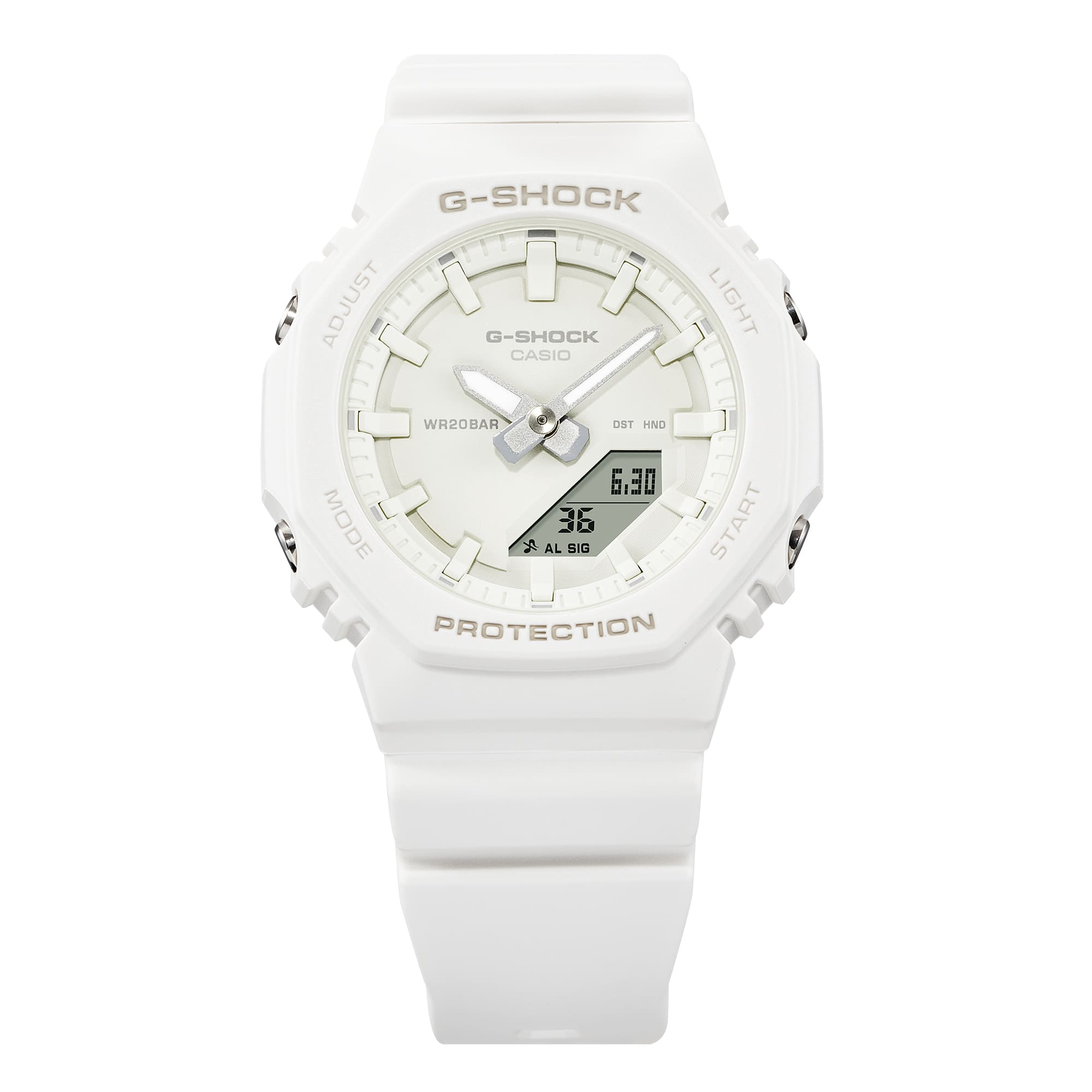 بدنه سفید و قاب هشتضلعی کلاسیکش، یه ترکیب جذاب از زیبایی و عملکرد حرفهایه — هم خوشفرمه، هم محکم. بدنه و بند از رزین زیستی ساخته شدهن که از منابع تجدیدپذیر تولید میشن، پس یه انتخاب سبزتر هم هست.
