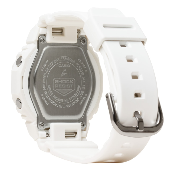 ساعت مچی زنانه جی شاک کاسیو مدل G-SHOCK GMA-P2100-7ADR این بار G-SHOCK اومده با باریکترین مدل خودش یعنی GMAP2100-7A، یه ساعت کاملاً خوشدست برای خانمها یا هرکسی که یه ساعت جمعوجورتر و شیکتر میخواد. از نظر ظاهر، همون طراحی محبوب GA2100 رو داره، ولی با یه قاب کوچیکتر، بند کوتاهتر و راحتی بیشتر.