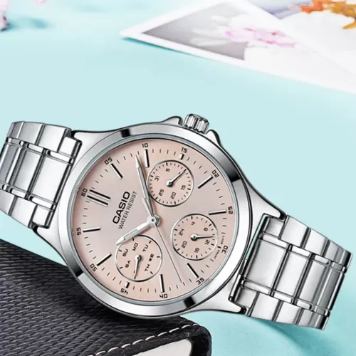 ساعت مچی زنانه کاسیو مدل CASIO LTP-V300D-4AUDF دارای بند استیل برای دوام و راحتی بیشتر است. این ساعت با ویژگیهایی همچون مقاومت در برابر آب، نمایش تاریخ، روز و شاخص 24 ساعته، یک گزینه کاربردی و همهکاره برای استفاده روزمره است.