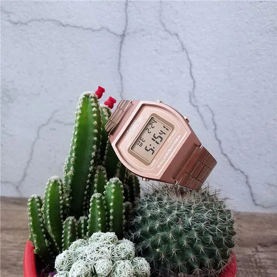 ساعت کاسیو وینتیج مدل B640WC-5A از همان خانواده محبوب و خاطره‌انگیز Casio Vintage است؛ سری‌ای که با زبان طراحی کلاسیک و مینیمال، حس نوستالژی دهه‌های گذشته را زنده می‌کند و در عین حال، امکانات کاملاً امروزی را در اختیار شما می‌گذارد. این مدل با رنگ خاص و بسیار پرطرفدار رزگلد و طراحی دیجیتال ساده، هم یک اکسسوری مدرن و شیک محسوب می‌شود و هم یک ابزار کاربردی برای استفاده روزمره. اگر به دنبال ساعت کاسیو دیجیتال سبک و خوش‌دست هستید که در کنار استایل روزمره، در موقعیت‌های نیمه‌رسمی هم به‌خوبی بدرخشد، B640WC-5A یکی از انتخاب‌های دقیق و جذاب خواهد بود.