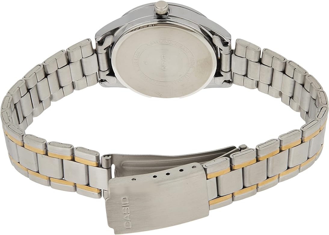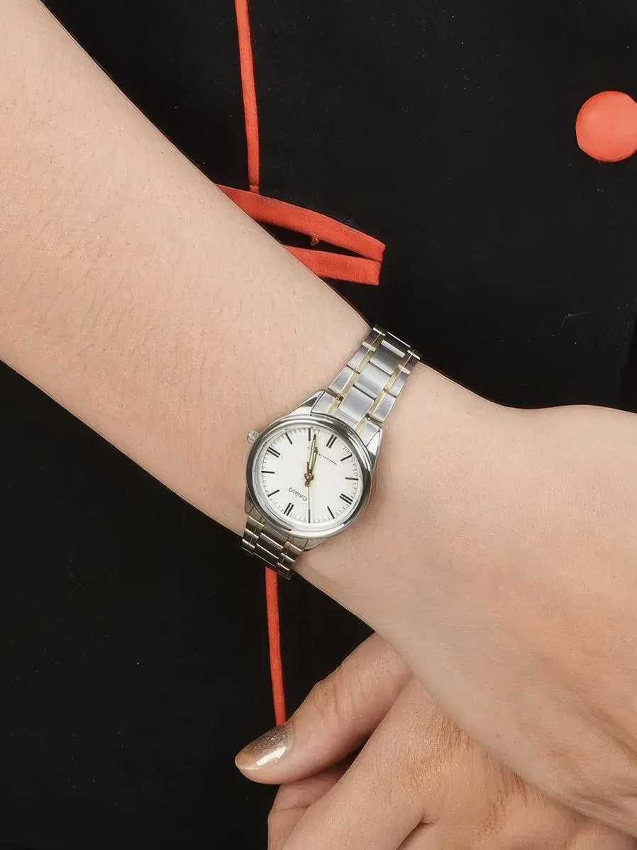 ساعت مچی زنانه کاسیو مدل CASIO LTP-V005SG-7A با طراحی ظریف و ترکیب رنگ استیل و طلایی، انتخابی مناسب برای استایلهای رسمی و نیمهرسمی است. این ساعت دارای صفحهای ساده و خوانا است که زیبایی و کاربردی بودن را همزمان ارائه میدهد. یک گزینه شیک و بادوام برای استفاده روزمره!