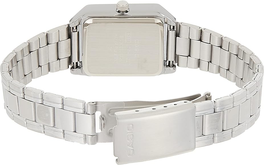 بسیاری از ساعتهای زنانه طراحی گرد دارند، اما LTP-V007D-4EUDF با قاب مستطیلی خود حس متفاوتی ایجاد میکند و بیشتر به ساعتهای کلاسیک و اصیل شباهت دارد. همین تفاوت کوچک، باعث میشود ساعت روی دست خاصتر و متفاوتتر دیده شود. همچنین صفحه صورتی آن، ظاهری لطیفتر و زنانهتر نسبت به صفحههای سفید یا نقرهای ایجاد میکند.