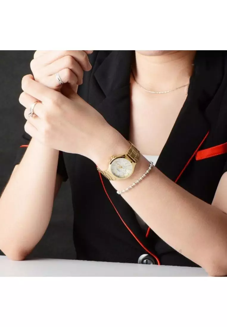 ساعت مچی زنانه کاسیو مدل CASIO LTP-V300G-7AUDF با طراحی شیک و استیل ضدزنگ، دارای مقاومت در برابر آب و نمایشگر تاریخ، روز و ساعت 24 ساعته است.