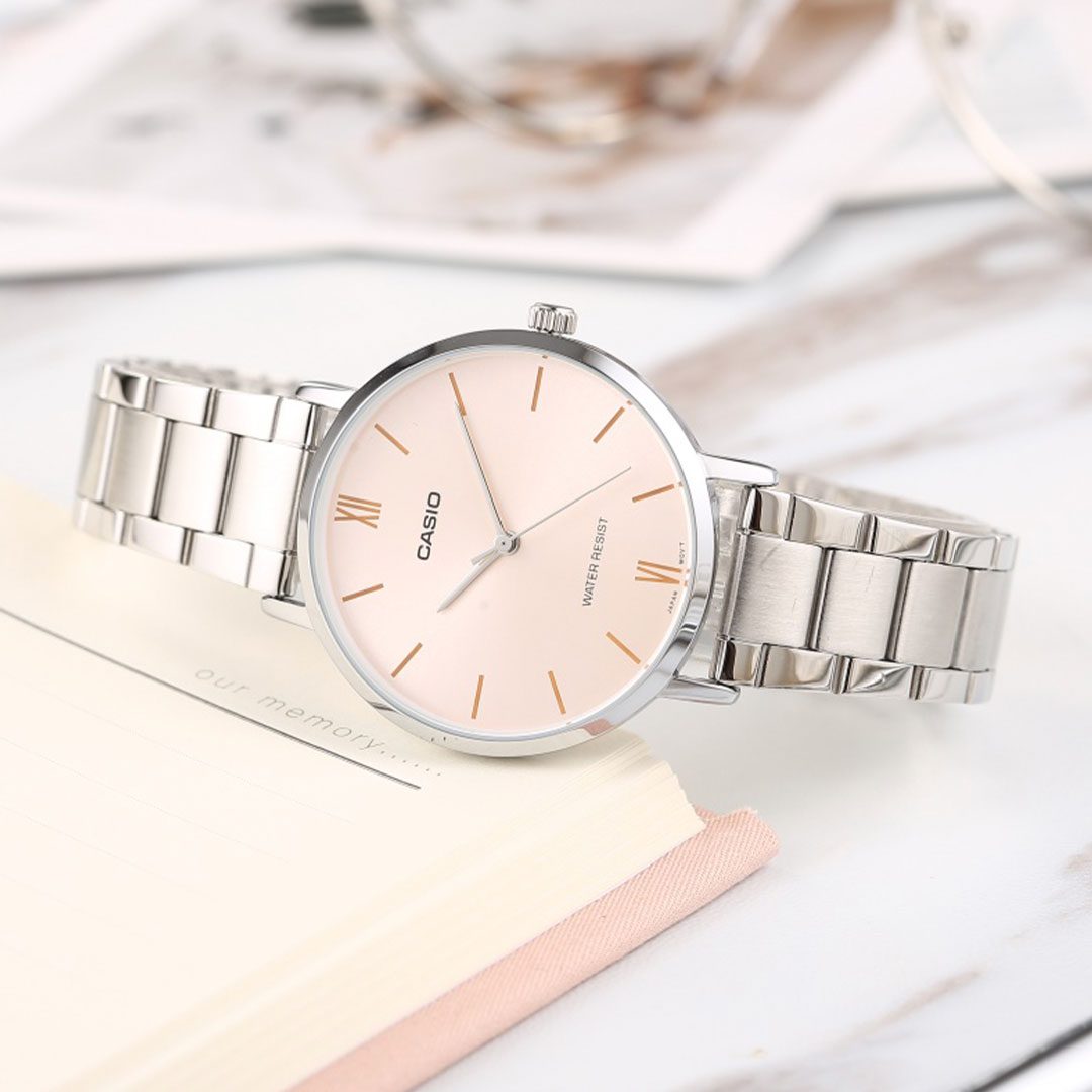 در حالی که بسیاری از ساعتهای زنانه طراحی دیجیتال یا اسپرت دارند، LTP-VT01D-4B با ترکیب بند استیل نقرهای و صفحه صورتی با ایندکس طلایی و عقربههای نقرهای ظاهری کلاسیک و زنانه ارائه میدهد. سادگی و ظرافت طراحی، این ساعت را به گزینهای ایدهآل برای خانمهایی تبدیل کرده که به دنبال ترکیبی از زیبایی، شیک بودن و کاربرد روزانه هستند.