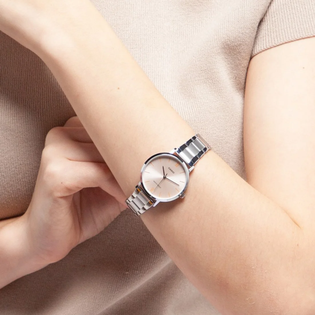برخلاف بسیاری از ساعت‌های زنانه که طراحی دیجیتال یا اسپرت دارند، LTP-VT01D-4B2 با ترکیب بند استیل نقره‌ای و صفحه صورتی با ایندکس طلایی و عقربه‌های نقره‌ای ظاهری کلاسیک و زنانه ارائه می‌دهد. سادگی و ظرافت طراحی باعث می‌شود این ساعت گزینه‌ای ایده‌آل برای خانم‌هایی باشد که به دنبال ترکیبی از زیبایی، شیک بودن و کاربرد روزانه هستند.