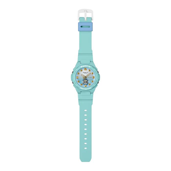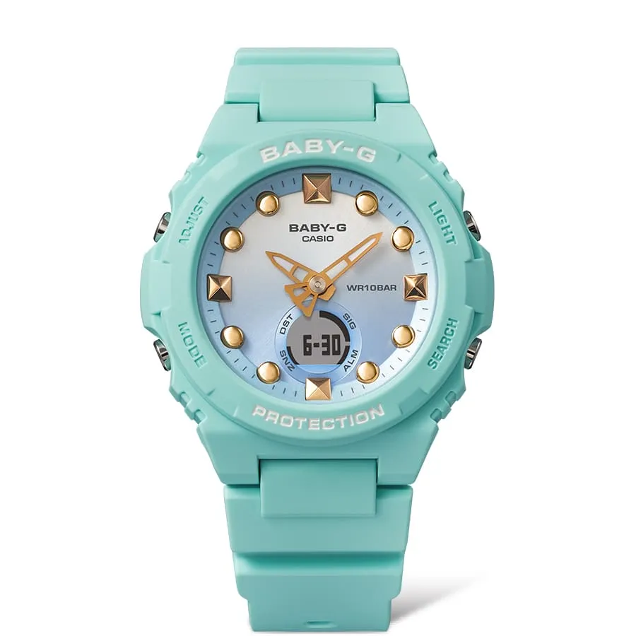 ساعت Casio Baby-G BGA-320-3ADR با ترکیب رنگ سبز آبی و طراحی الهام‌گرفته از دریا، انتخابی ایده‌آل برای روزهای گرم تابستان است. مقاوم، سبک و پرانرژی — ساعتی که حس دریا را همیشه همراهتان نگه می‌دارد.