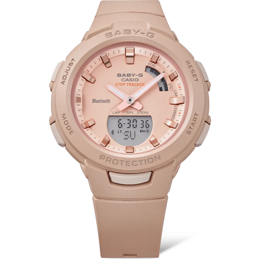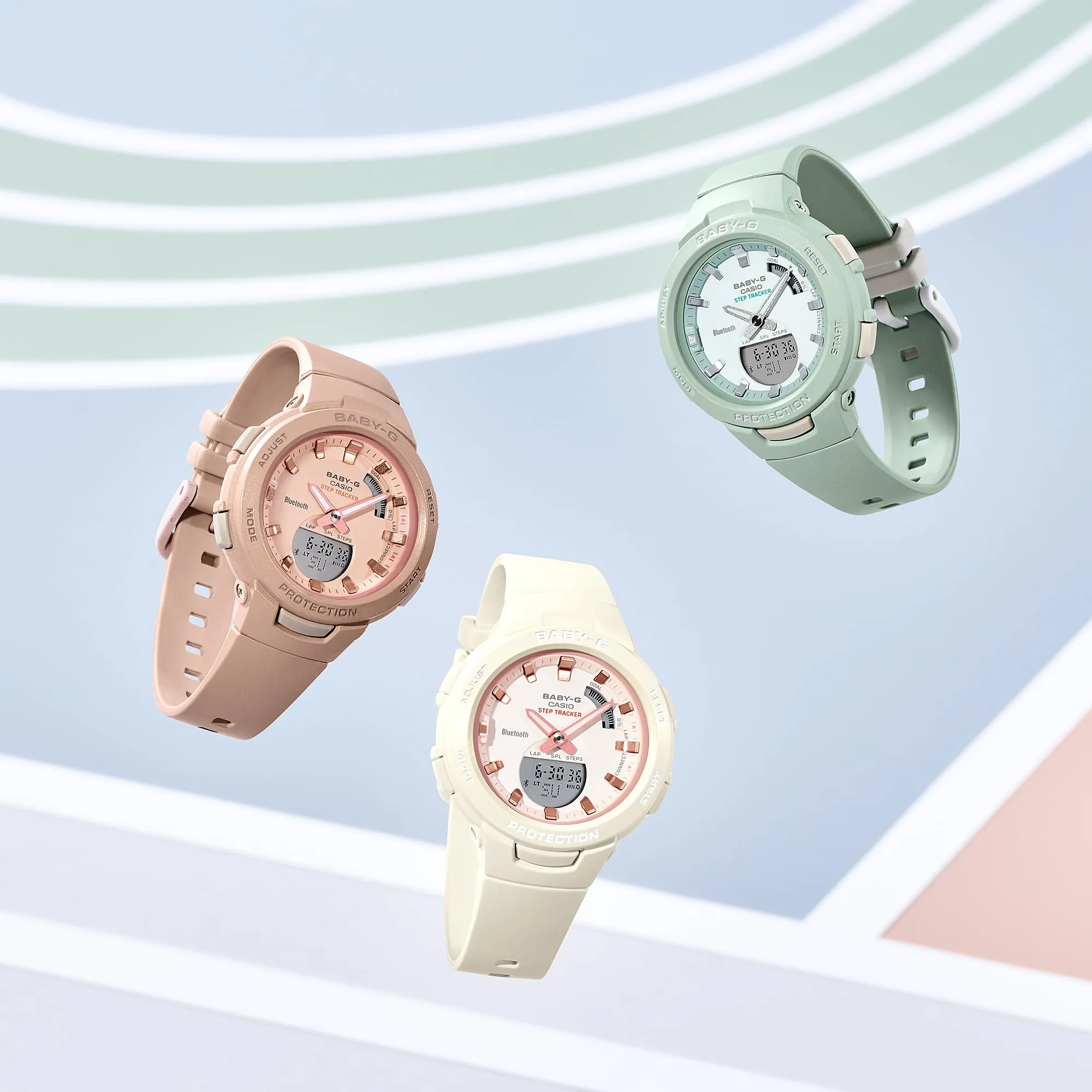 ساعت کاسیو بیبی‌جی مدل BABY-G BSA-B100CS-4A یکی از مدل‌های پیشرفته سری BSA-B100 است که مناسب کسانی طراحی شده که ورزش و سبک زندگی فعال را جدی دنبال می‌کنند. این مدل با ترکیب طراحی اسپرت، قابلیت‌های هوشمند و رنگ‌بندی ملایم و جذاب، تجربه‌ای کامل برای پیگیری فعالیت‌های روزانه و ورزش ارائه می‌دهد.