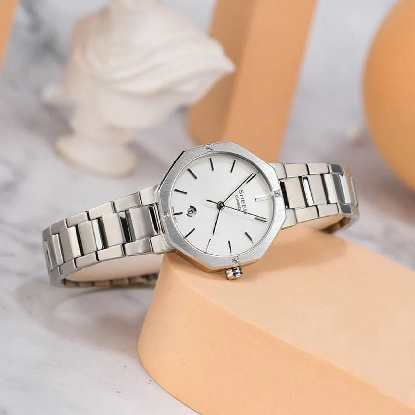 در مقایسه با مدلهای دیگر سری Shine، مانند SHE-4543GL-8AUDF که طراحی آن بیشتر روی اکلیلی بودن قاب تمرکز دارد، مدل SHE-4543D-7AUDF با طراحی مینیمال و هشتضلعی قاب، ترکیبی از سادگی و درخشش را ارائه میدهد. این ویژگی باعث میشود برای بانوانی که به دنبال یک ساعت کاربردی و در عین حال شیک هستند، انتخابی مناسب و خاص باشد.