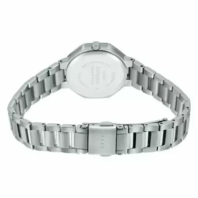 این مدل از شیشه یاقوتی ضدخش (Sapphire Crystal) بهره میبرد که مقاومت بالایی در برابر خط و خش داشته و وضوح بینظیری به صفحه میبخشد. مقاومت در برابر آب تا ۵۰ متر، استفاده از ساعت را در محیطهای مرطوب یا هنگام شستوشو بدون نگرانی ممکن میسازد. قطر مناسب و طراحی سبک، امکان استفاده طولانیمدت و راحتی فوقالعاده برای بانوان را فراهم میکند.