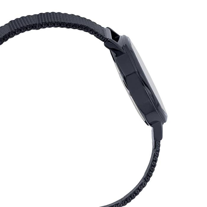 رنگ مشکی یونپلیت شده بدنه و صفحه، در کنار بند مش استیل، حس یک اکسسوری لوکس و مدرن را منتقل میکند. این طراحی خاص، الهامگرفته از زیورآلات مینیمال امروزی است و در هر موقعیتی جلوهای حرفهای و شیک دارد.