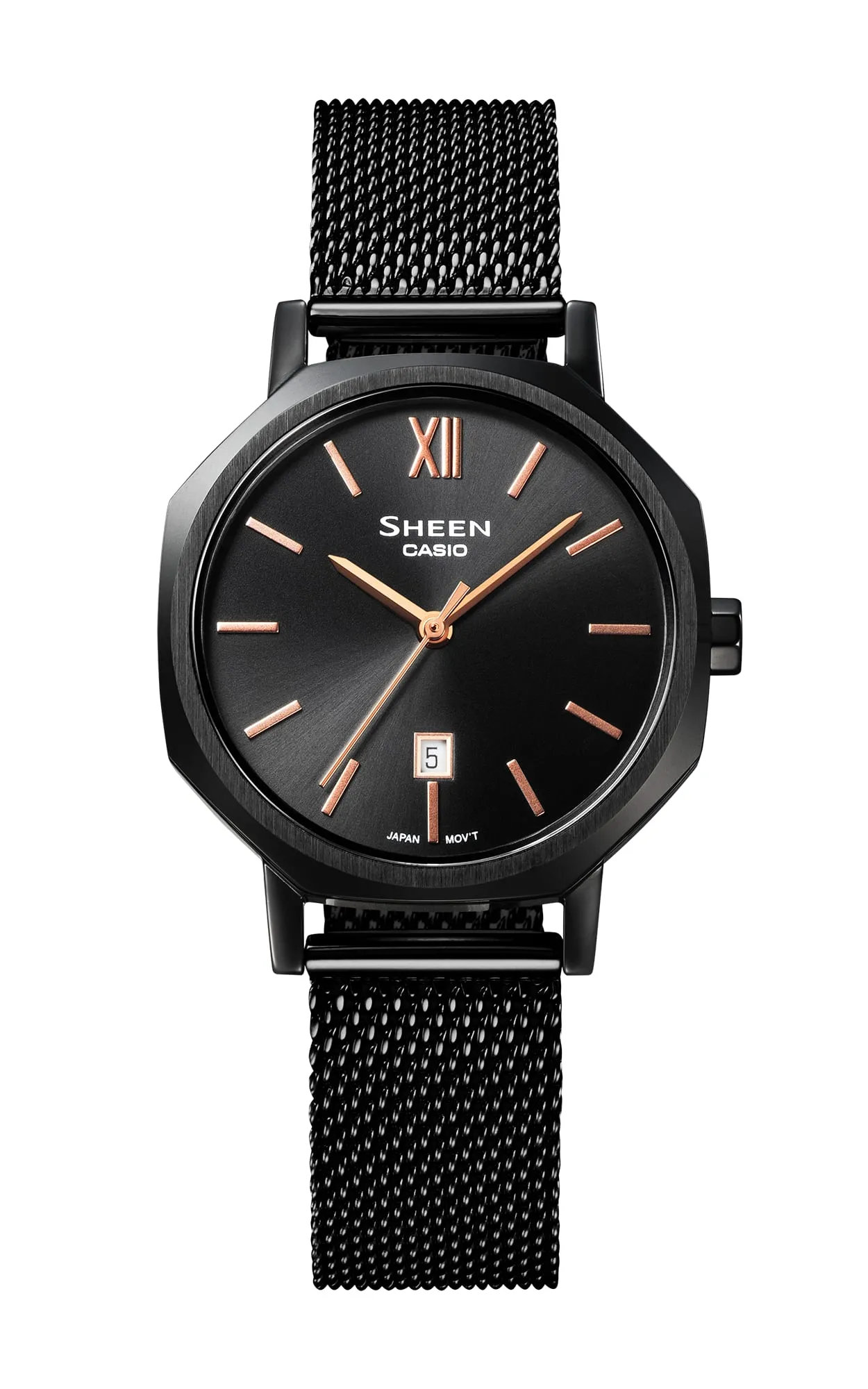 بند مشکی با طراحی مش، راحتی فوقالعادهای روی مچ دارد و بهراحتی قابل تنظیم است. SHE-4554BM-1A انتخابی عالی برای کسانی است که استایل مدرن و ساده را ترجیح میدهند اما از جزئیات دقیق و خاص نمیگذرند.