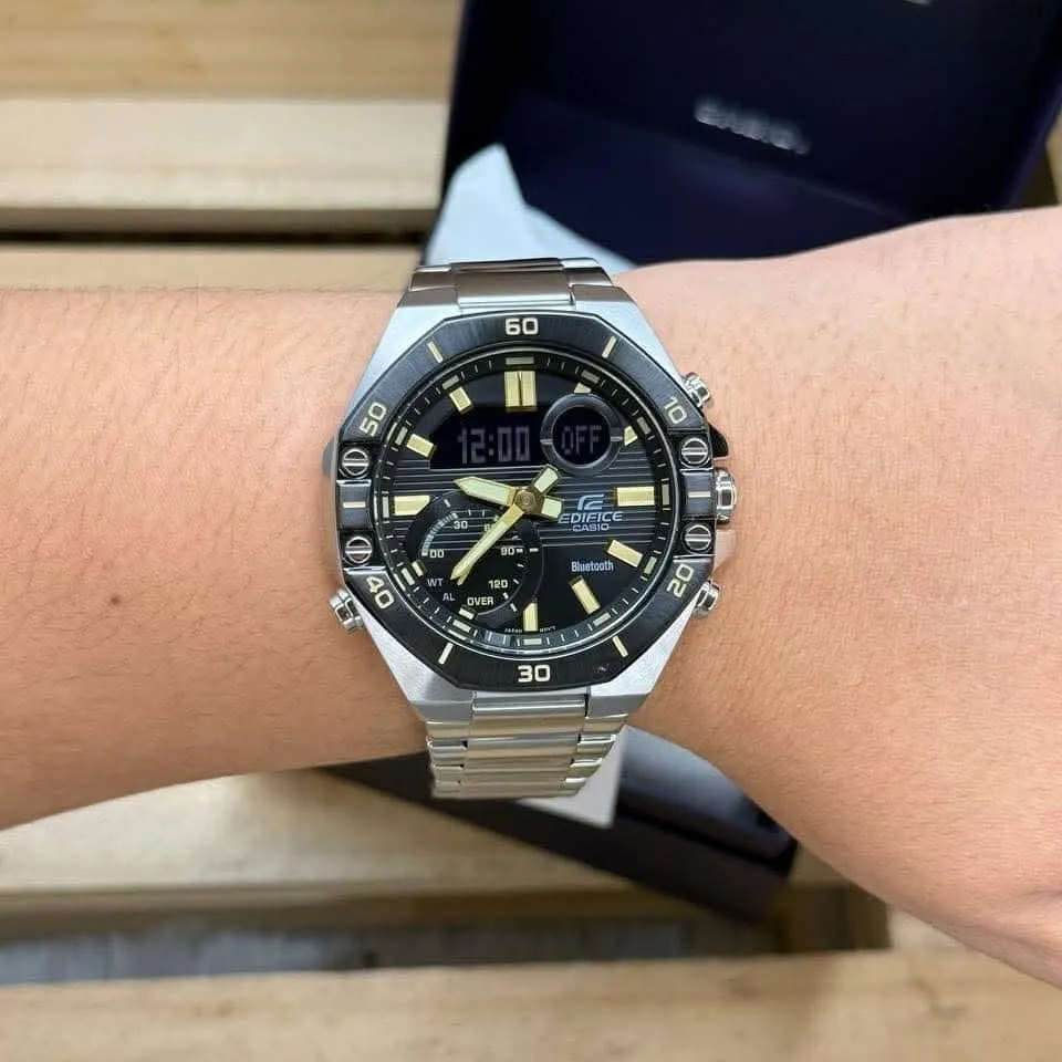مدل ECB-10DB-1A9ADF با اتصال بلوتوثی به گوشی از طریق اپلیکیشن CASIO WATCHES، به‌صورت خودکار زمان را تنظیم می‌کند و امکانات هوشمندی مثل Schedule Timer را در اختیار شما می‌گذارد؛ قابلیتی که با همگام‌سازی تقویم گوشی، شروع و پایان رویدادها را روی نمایشگر ساعت نشان می‌دهد.