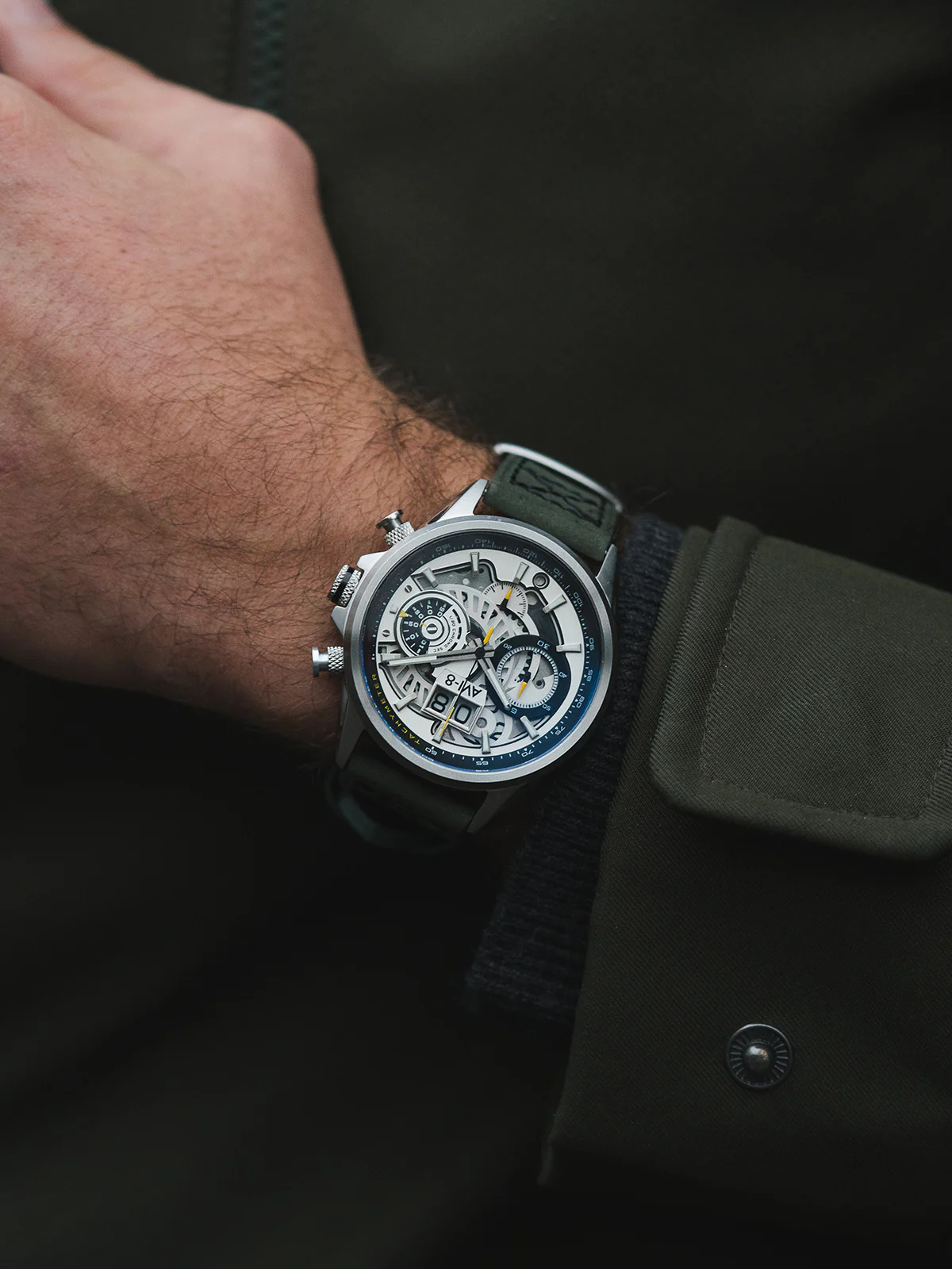ساعت مچی مردانه ای وی ایت AVI-8 مدل AV-4065-01 به هواپیمای معروف Hawker Harrier “Jump Jet” ادای احترام میکند؛ یک هواپیمای انقلابی که در نیروهای هوایی و دریایی مختلف در اواخر قرن بیستم خدمت کرد. این هواپیما به دلیل طراحی شگفتانگیزش شناخته شد و در بسیاری از ماموریتها با افتخار خدمت کرد. الهام گرفته از نسخههای مختلف این هواپیما در نیروی دریایی اسپانیا با نام مستعار "Matador"، AVI-8 مدل جدیدی از کرونوگراف Harrier را معرفی کرده است. با عملکرد دقیق زمان، "Matador" با چرخش عقربه ها و چرخدندهها زنده میشود و تجربهای پویا مانند پرواز یک هواپیمای Harrier را ارائه میدهد.