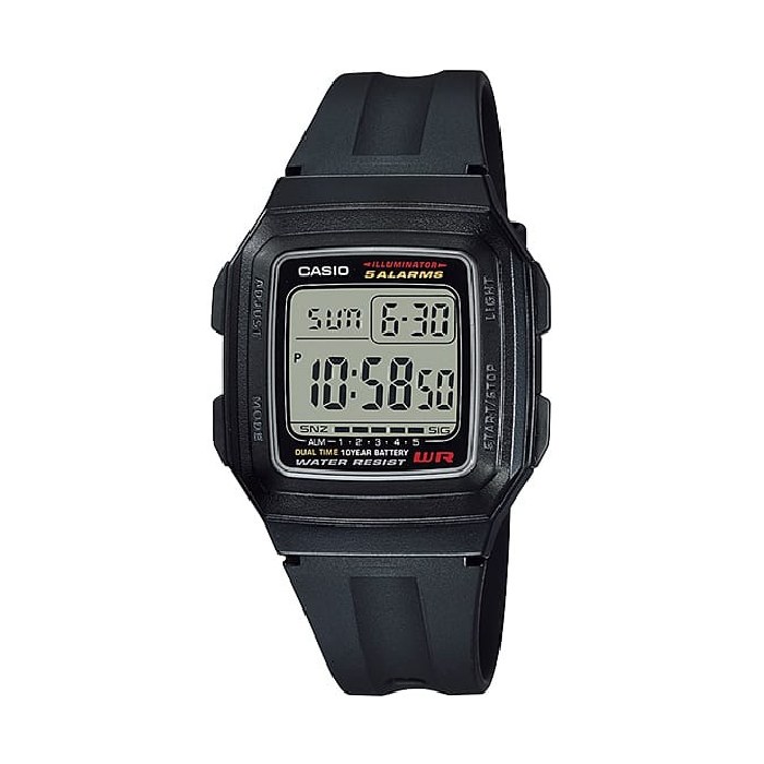 ساعت مچی وینتیج کاسیو مدل CASIO F-201WA-1A این ساعت دیجیتال با عمر باتری ۱۰ ساله، دارای ۵ آلارم چندکاره مستقل، نور LED و مقاومت در برابر آب است. طراحی مستطیلی ساده آن همیشه مد روز است و برای استفاده روزمره بسیار مناسب است. این ساعت عملکردهای کاربردی زیادی را در یک طراحی ساده و زیبا ارائه میدهد.