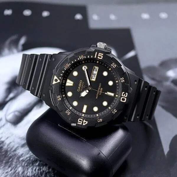 ساعت مچی اسپرت کاسیو مدل CASIO MRW-200H-1E با طراحی غواصی مدرن، دارای قاب چرخشی، مقاومت در برابر آب تا 100 متر و نمایشگر روز و تاریخ است. اعداد بزرگ و خوانا در صفحه نمایش، این ساعت را به گزینهای مناسب برای استفاده روزمره و فعالیتهای آبی تبدیل میکند.