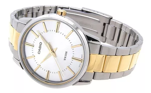 ساعت MTP‑1303SG‑7A دارای قاب و بند از جنس استیل ضد زنگ دو رنگ است. بند با ترکیب رنگ نقرهای روشن و طلایی براق جلوهای چشمگیر و کلاسیک به ساعت میبخشد. صفحه ساعت با زمینه نقرهای ملایم طراحی شده و نشانگرها و جزئیات کوچکتر به رنگ طلایی هستند که خوانایی بالای زمان را فراهم میکند و حس لوکس بودن را تقویت میکند. این ترکیب رنگ باعث میشود ساعت به سادگی با لباسهای رسمی و همچنین استایلهای روزمره هماهنگ شود بدون اینکه سنگین یا نامتناسب به نظر برسد.