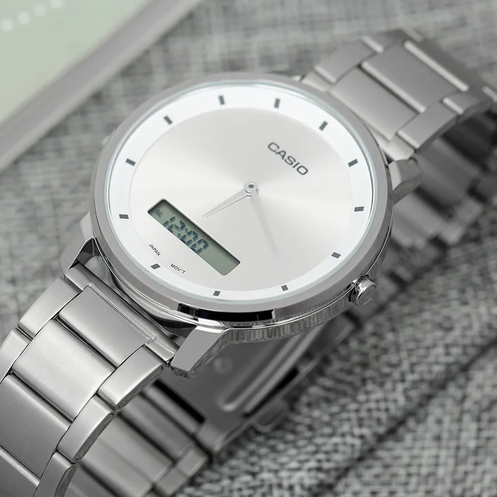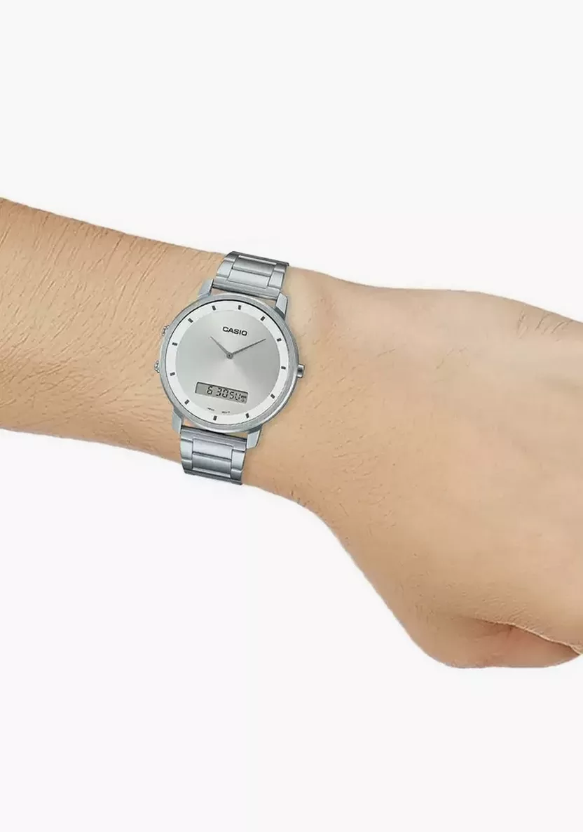 این مدل آنالوگ-دیجیتال خوانایی بالایی دارد و امکاناتی چون کرونومتر، آلارم، نمایش دو زمان و تقویم خودکار را ارائه میدهد. مقاومت در برابر آب برای استفاده روزمره، شما را از نگرانیهای روزانه مانند شستوشو یا باران آزاد میکند.