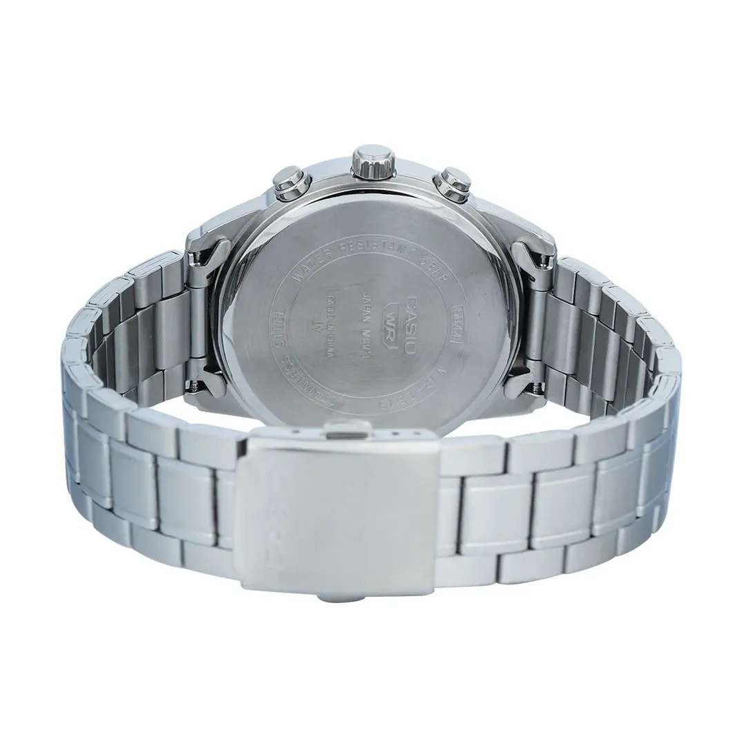 ساعت مچی مردانه کاسیو مدل CASIO MTP-E515D-2A1VDF این ساعت آنالوگ استیل با طراحی کرونوگراف اسپرت و نمایشگر دقیق، ترکیبی از زیبایی و عملکرد است. سه صفحه داخلی زمان ۲۴ ساعته، کرنومتر ثانیهای و دقیقهای را نمایش میدهند. مقاومت در برابر آب تا عمق ۵۰ متر، استفاده بینگرانی در روزهای بارانی را ممکن میسازد.
