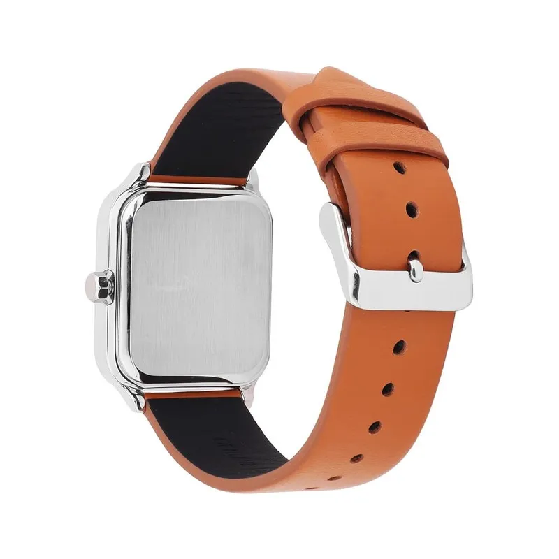 طراحی این مدل بر پایه سادگی کلاسیک و جزئیات دقیق انجام شده است. قاب ساعت از استیل ضدزنگ نقرهای ساخته شده که علاوه بر دوام، جلوهای رسمی و باوقار به ساعت میدهد. بند چرمی قهوهای راحتی و استایل کلاسیک را همزمان فراهم میکند و با انواع استایلهای رسمی و نیمهرسمی بهخوبی هماهنگ میشود.