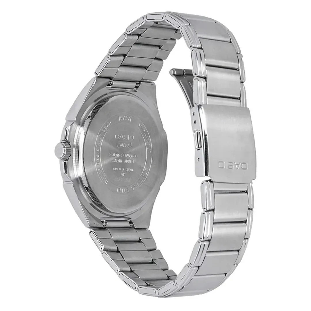 این مدل از فناوری Solar Powered بهره میبرد و انرژی خود را از نور خورشید یا نور مصنوعی دریافت میکند. این ویژگی باعث میشود نیاز به تعویض باتری کاهش یابد و ساعت برای مدت طولانی بدون دغدغه کار کند.