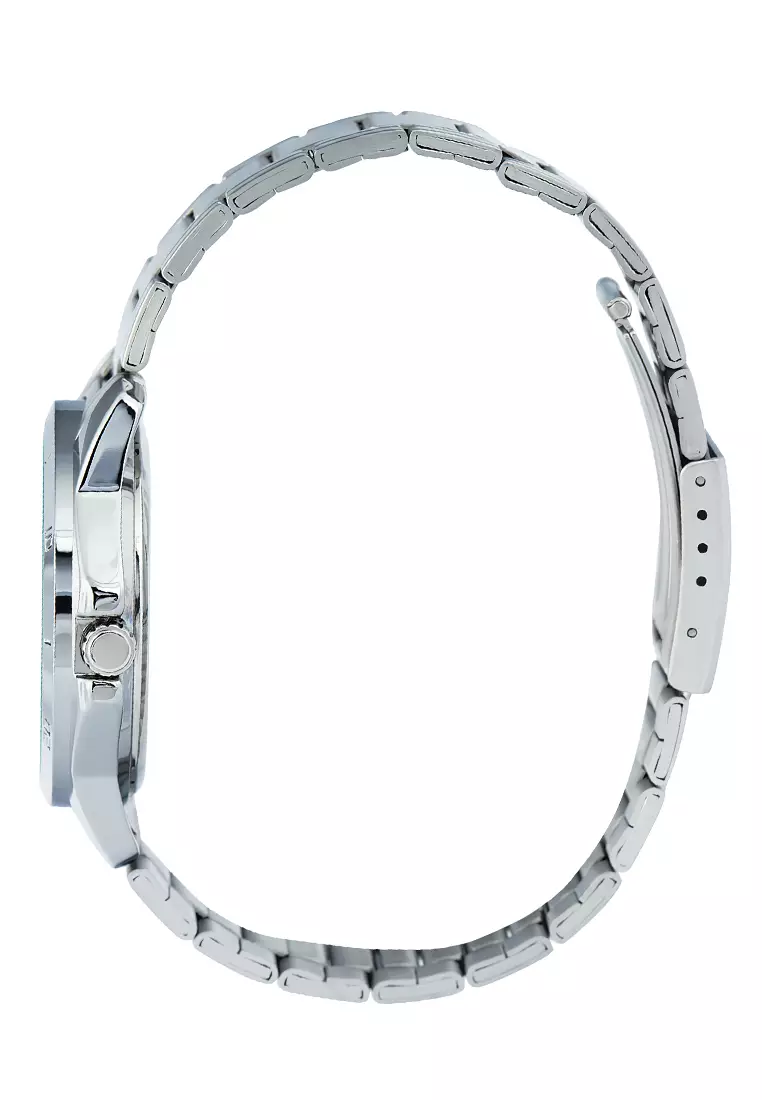 در این ساعت، کاسیو سراغ ترکیب بسیار محبوب استیل نقرهای و صفحه روشن رفته است. قاب از استیل ضدزنگ با رنگ نقرهای طراحی شده و ظاهری ساده، مرتب و رسمی روی مچ ایجاد میکند. بند نیز از استیل نقرهای ساخته شده و با قاب هماهنگی کامل دارد، بهطوریکه ساعت روی دست یکدست و تمیز دیده میشود.