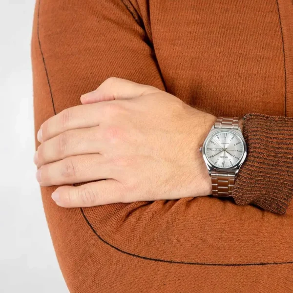 ساعت مچی مردانه کاسیو مدل CASIO MTP-V006D-7C یک طراحی ساده و شیک که با هر استایلی هماهنگ میشود. ساعتهای آنالوگ کلاسیک با طراحی بر اساس ظاهر نمادین عقربههای ساعت، دقیقه و ثانیه، به شما این امکان را میدهند که به راحتی از موقعیتهای کژوال به موقعیتهای رسمی منتقل شوید. نشانگرهای ساده و شیک و نمایش تاریخ و روز در موقعیت ۳ ساعت، هم طراحی شیک و هم راحتی کاربردی را ارائه میدهند. مقاومت در برابر آب برای استفاده روزمره شما را از نگرانی در هنگام شستشو یا در روزهای بارانی رها میکند.