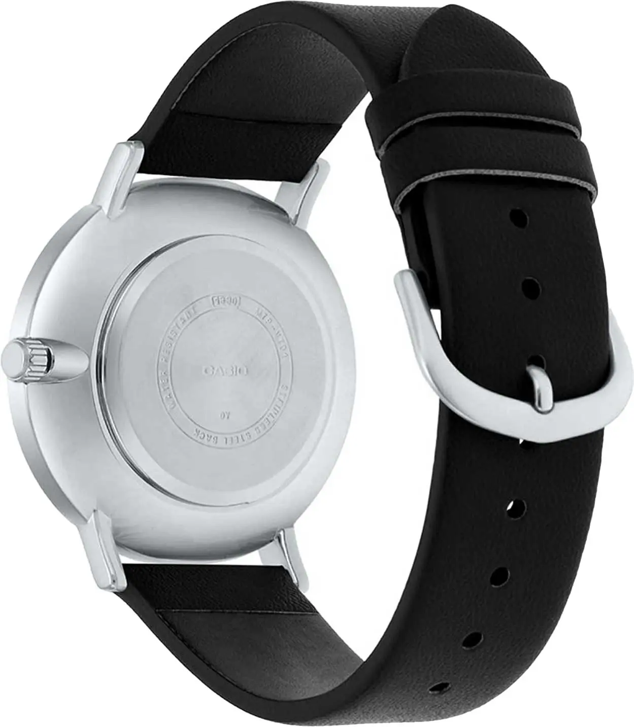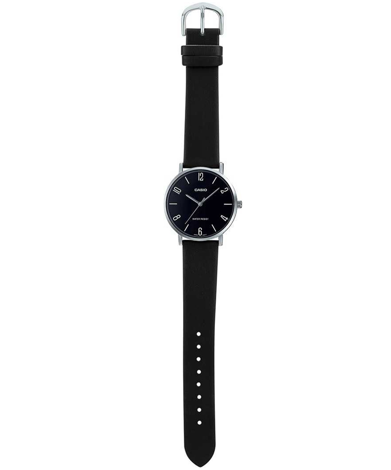 ساعت مچی مردانه کاسیو مدل CASIO MTP-VT01L-1B2 با طراحی مینیمال و زیبا ارائه شده است. این مدل دارای صفحه مشکی ساده با شاخصهای خطی نقرهای و عقربههای باریک است. بند چرمی اصل و مقاومت در برابر آب برای استفاده روزمره، آن را به انتخابی شیک و کاربردی تبدیل کرده است.