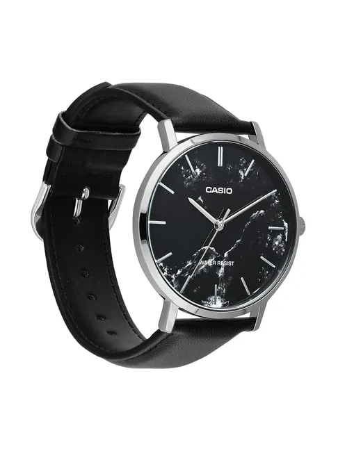 اگر دنبال یک ساعت مردانه هستی که در عین سادگی، حس شیک‌بودن و اصالت رو منتقل کنه، کاسیو MTP-VT01LM-1AUDF یکی از همون مدل‌هاییه که با اولین نگاه، دل آدم رو می‌بره. این ساعت با ظاهر کلاسیک، صفحه‌ای مینیمال و بند چرمی خوش‌فرم طراحی شده تا مناسب استایل روزمره، رسمی و حتی نیمه‌کلاسیک باشه. مهم‌ترین ویژگی جذابش، صفحه‌ای با طرح الهام‌گرفته از بافت سنگ مرمر هست؛ چیزی که باعث میشه ساعت، با وجود طراحی ساده، حس خاص بودن داشته باشه و از ساعت‌های معمولی بازار متمایز بشه. دقیق، خوش‌ساخت، سبک و خوش‌نشین روی دست — درست همون چیزی که از یه ساعت مردانه‌ شیک و روزمره انتظار داری.