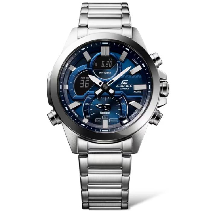 ساعت مچی Casio Edifice ECB-30D-2ADF یکی از مدلهای هوشمند و مدرن سری EDIFICE است که با ترکیب طراحی فلزی لوکس، فناوری بلوتوث و ظاهری الهامگرفته از خودروهای اسپرت، نمایانگر مفهوم واقعی سرعت و هوشمندی است. این مدل مخصوص کسانی طراحی شده که به دقت، عملکرد و طراحی حرفهای اهمیت میدهند — ساعتی که هم ظاهر کلاسیک ادیفایس را دارد و هم امکانات هوشمند نسل جدید را در اختیار شما میگذارد.