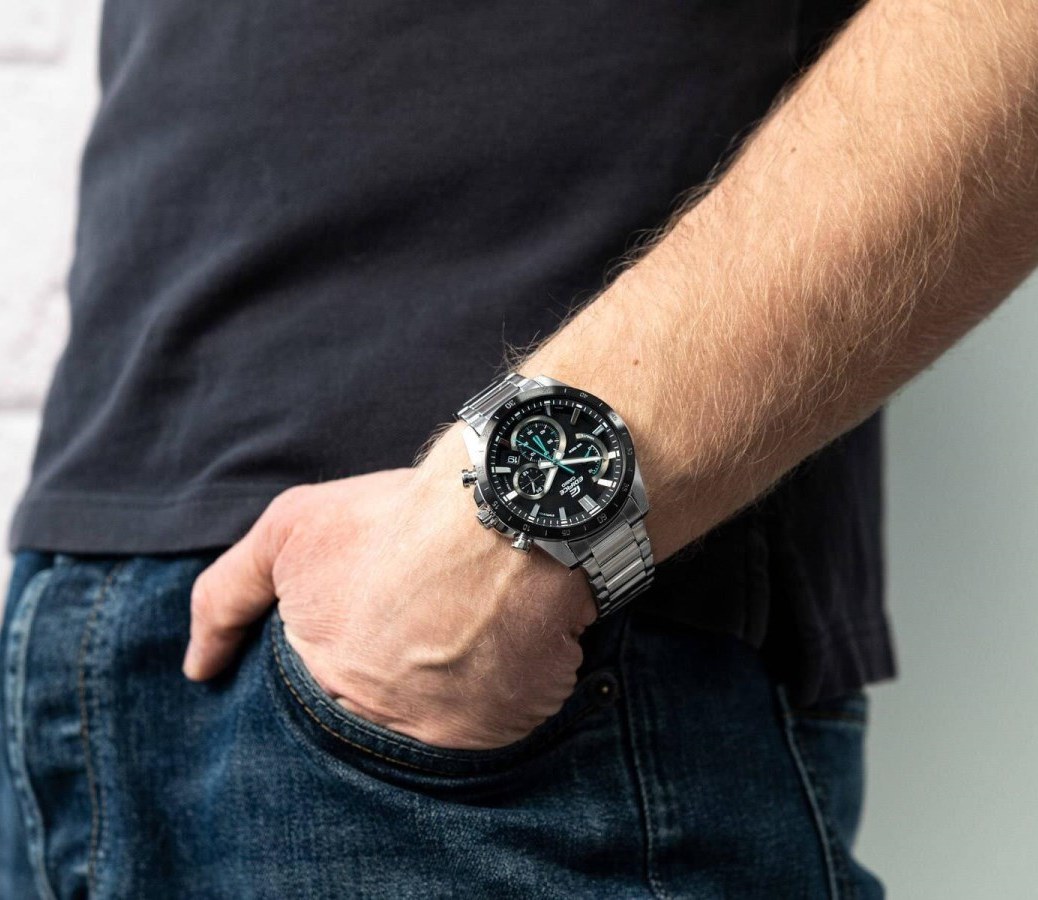 ایندکسهای ضخیم و صفحههای فرعی، توی طراحی جمعوجور ساعت خوب جا گرفتن. قاب با روکش مشکی ضدخش و صفحه مشکی ساعت، یه حس مستحکم بودن و مطمئن بودن میدن، و ترکیبش با عقربهها و جزئیات سبز، یه حس متفاوت و خاص بهش اضافه کرده.