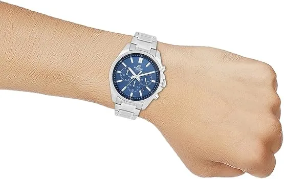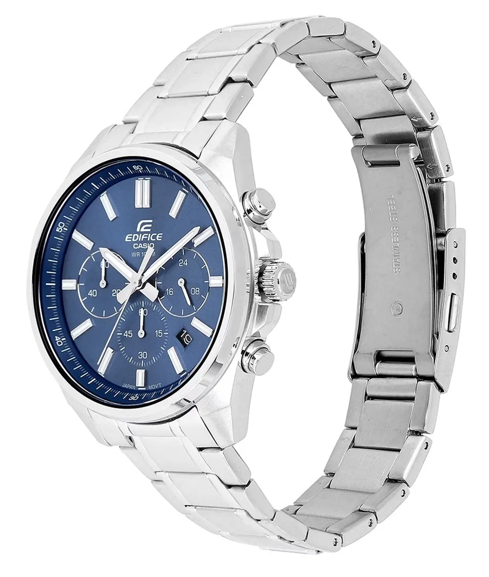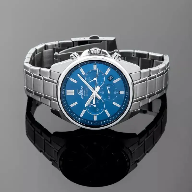 ساعت مچی مردانه ادیفایس کاسیو مدل EDIFICE EFV-650D-2AVUDF ترکیب دقیق و هماهنگ از طراحی کلاسیک و جزئیات شیک؛ این کرنوگراف سایز متوسط از سری EDIFICE با یه قاب باریک و صفحهی بزرگ، استایلی چشمگیر و خوشتیپ رو بهت میده.