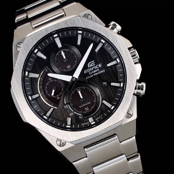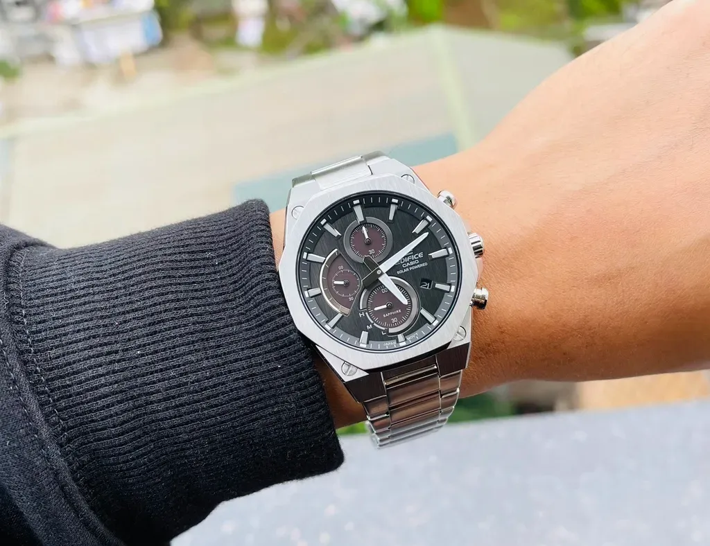 ساعت مچی مردانه ادیفایس کاسیو مدل EDIFICE EFS-S570D-1A کرنوگراف خورشیدی باریک با شیشه یاقوتی | برخلاف بیشتر کرنوگرافهایی که قابهای ضخیمی دارن، این مدل خورشیدی با ضخامت فقط ۹.۷ میلیمتر طراحی شده تا روی دست خیلی راحت بشینه.