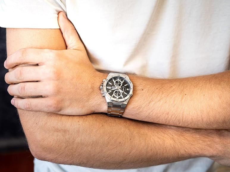 زمان سنجی منظمآنالوگ: 3 عقربه (ساعت، دقیقه، ثانیه)، 3 شماره گیری (کرنومتر 1/10 ثانیه، کرنومتر دقیقه، کرنومتر ثانیه)