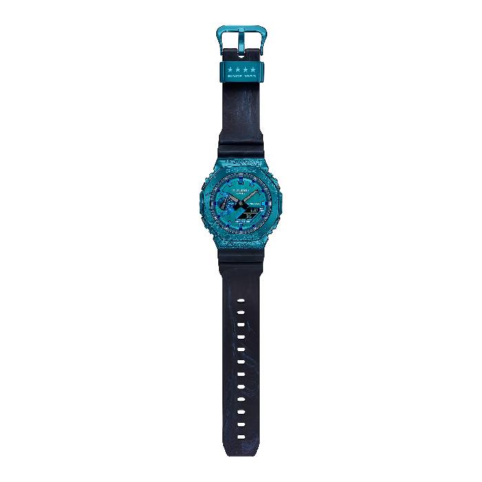 بندهای شفاف یا رنگیشون هم با داغکوبی و قالبگیری Garal یه بافت خاص پیدا کردن که حسابی به چشم میاد. روی صفحه نوشتهی SINCE 1983 دیده میشه، پشت قاب هم لوگوی مخصوص ۴۰سالگی که Eric Haze طراحی کرده حک شده، و روی حلقهی بند چهار تا ستاره گذاشتن که نماد ۴۰ سال مقاومت G-SHOCKـه.