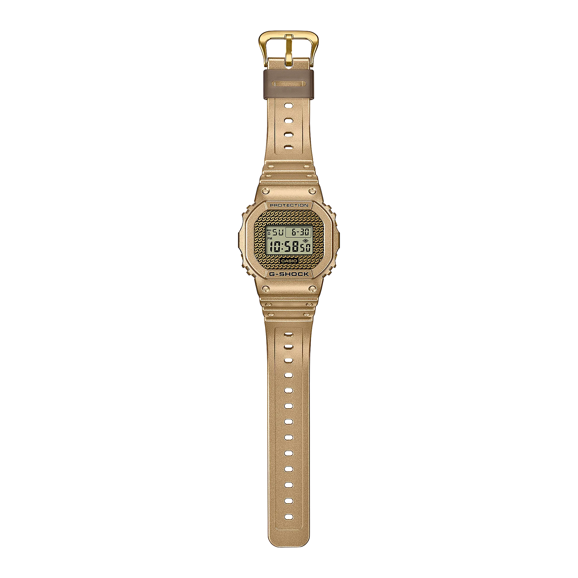 مدل DWE-5600HG با ترکیب مشکی و طلایی و صفحهای که طرح زنجیر داره، یه ظاهر خاص و پرانرژی داره که حالوهوای موسیقی خیابون رو کامل منتقل میکنه.