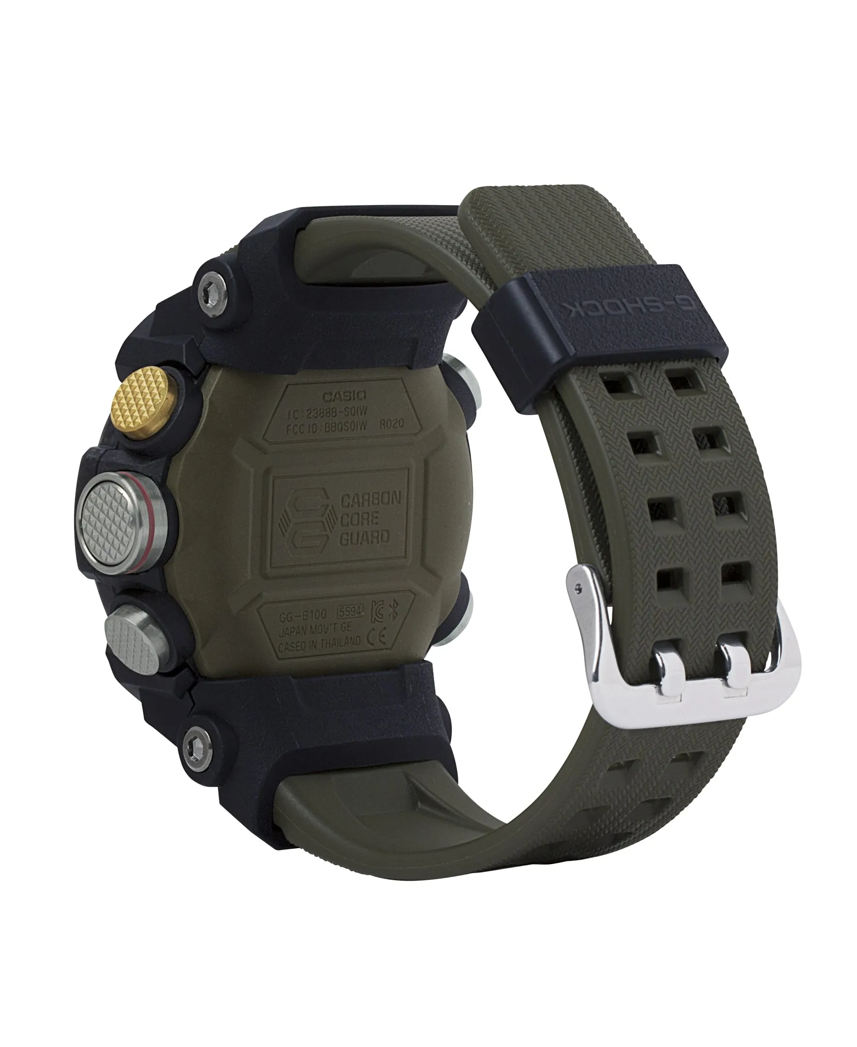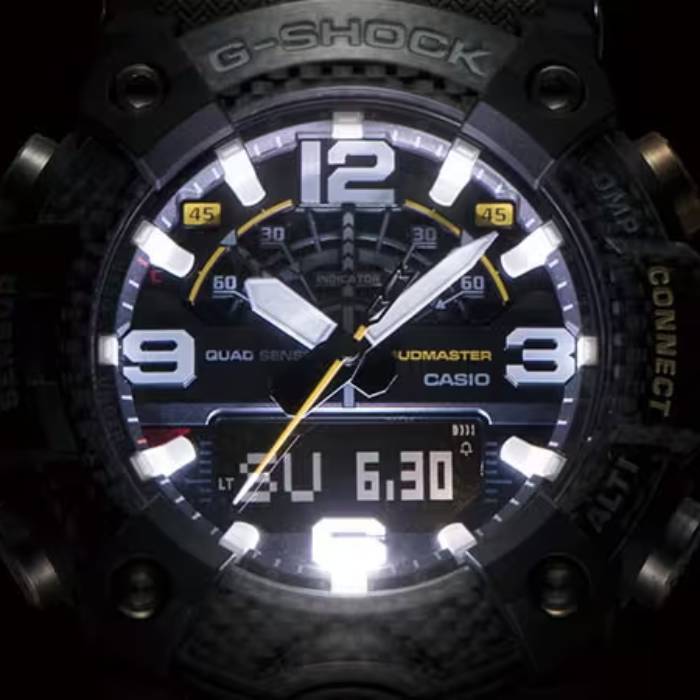ساعت مچی اسپرت جی شاک کاسیو مدل G-SHOCK GG-B100-1A3 این مدل از سری G-Shock Mudmaster طراحی شده است تا در سختترین شرایط و محیطهایی پر از آوار، خاک و گل و لای قابل استفاده باشد و از مواد کربنی بهره میبرد. استفاده از کربن با استحکام بالا در بدنه، مانع از آسیب و تغییر شکل شده و سطح بالایی از مقاومت در برابر ضربه و نفوذ هوا را تضمین میکند. این مدل دارای فیلتر محافظ در برابر نفوذ گل و لای، صفحه پشتی از جنس استیل ضدزنگ و پوشش پشتی از رزین مقاوم با الیاف شیشهای است که مقاومت بالایی در برابر گرد و غبار و گل و لای فراهم میکند.