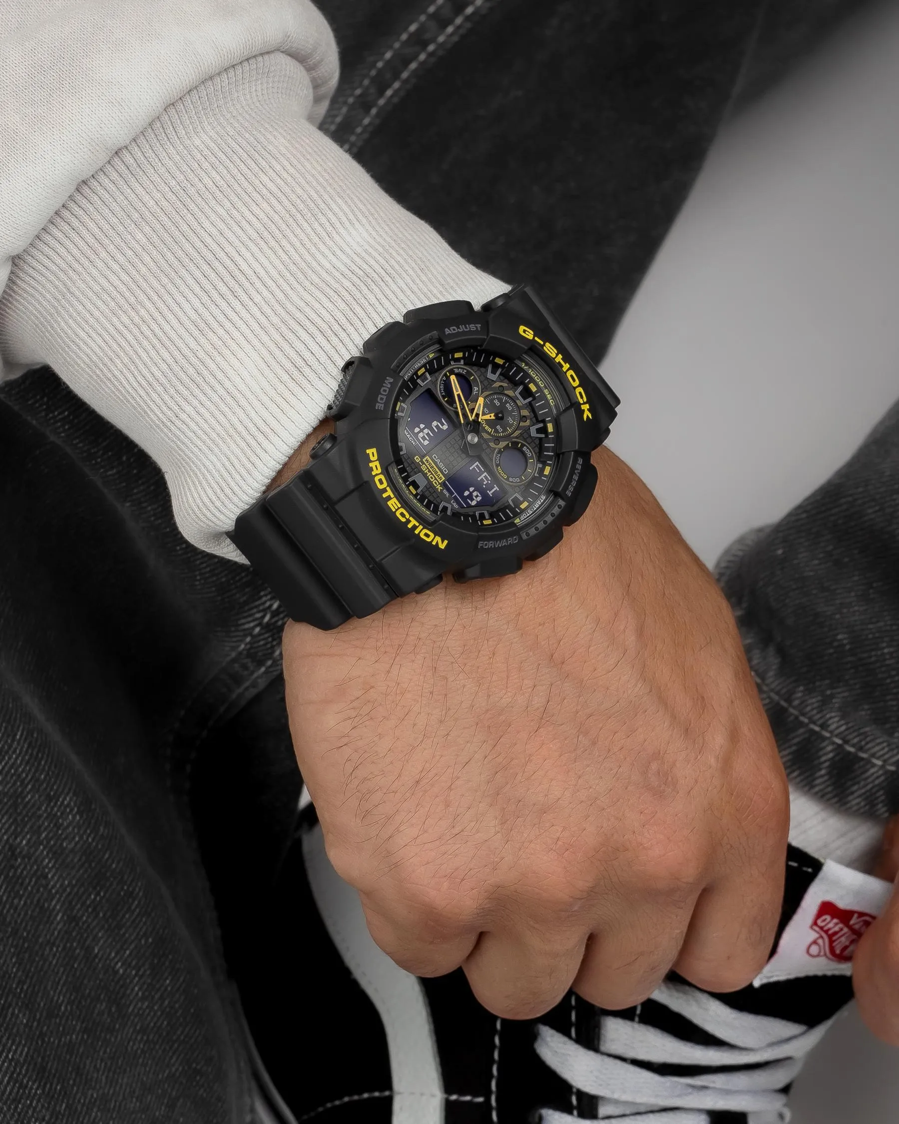 سری GA-100 به دلیل قاب بزرگ، ترکیب دیجیتال و آنالوگ و مقاومت بالای G-SHOCK شناخته می‌شود. مدل CY-1ADR با طراحی رنگی مشکی-زرد جلوه‌ای قدرت‌مند، اسپرت و خیابانی دارد و برای استایل روزمره و فعالیت‌های سبک ورزشی بسیار مناسب است.