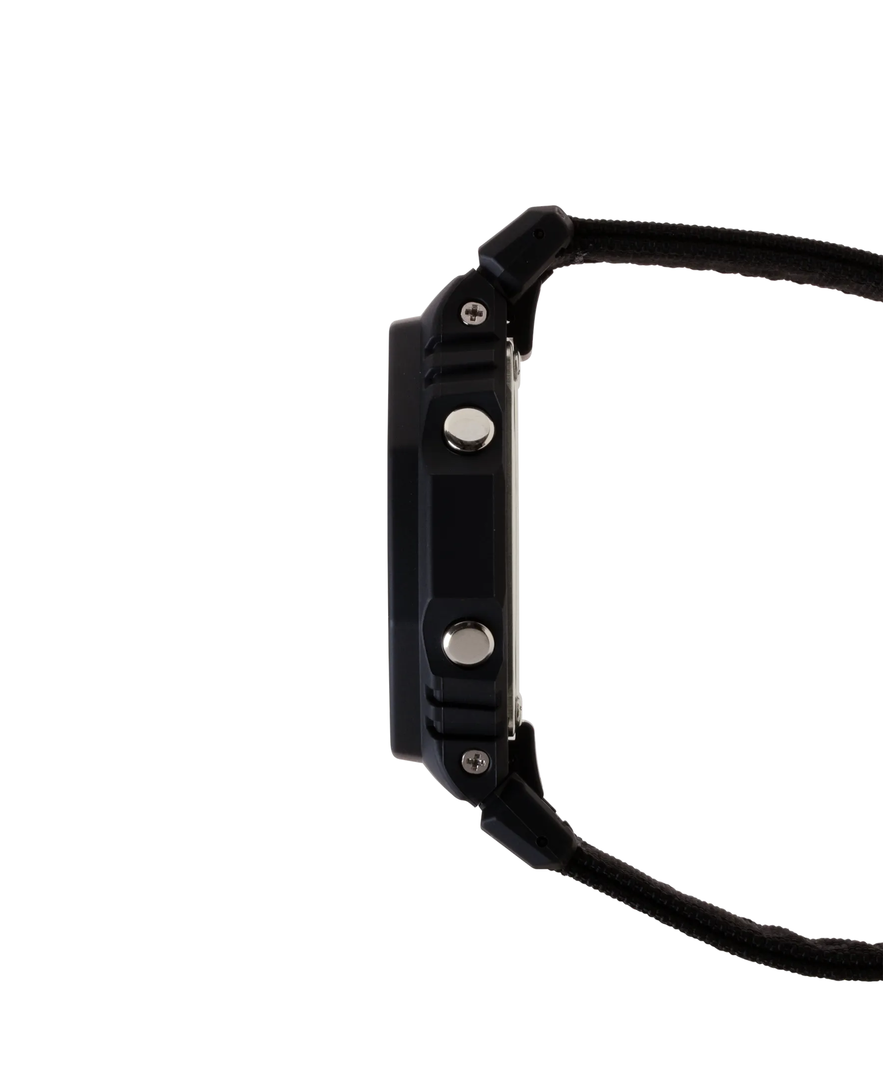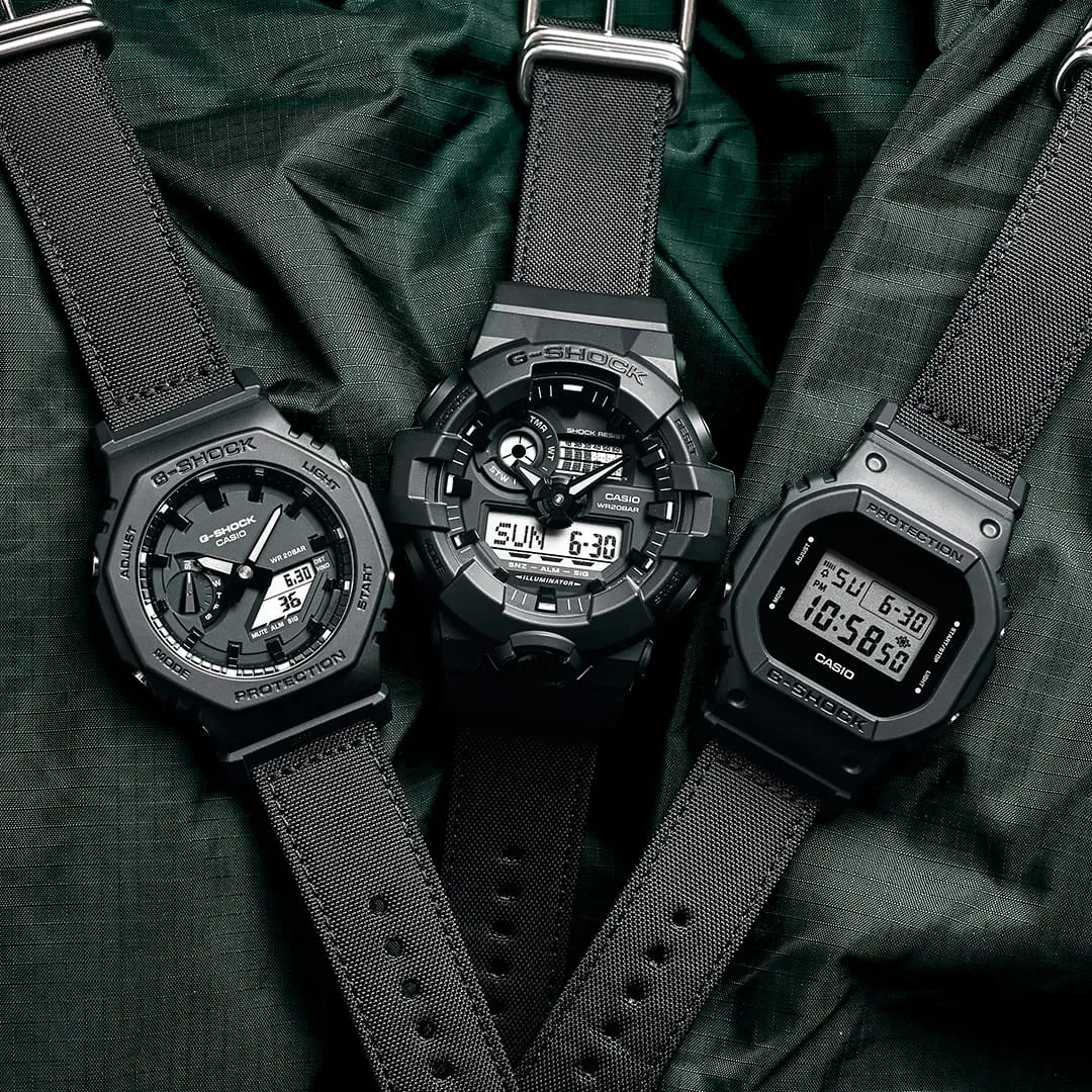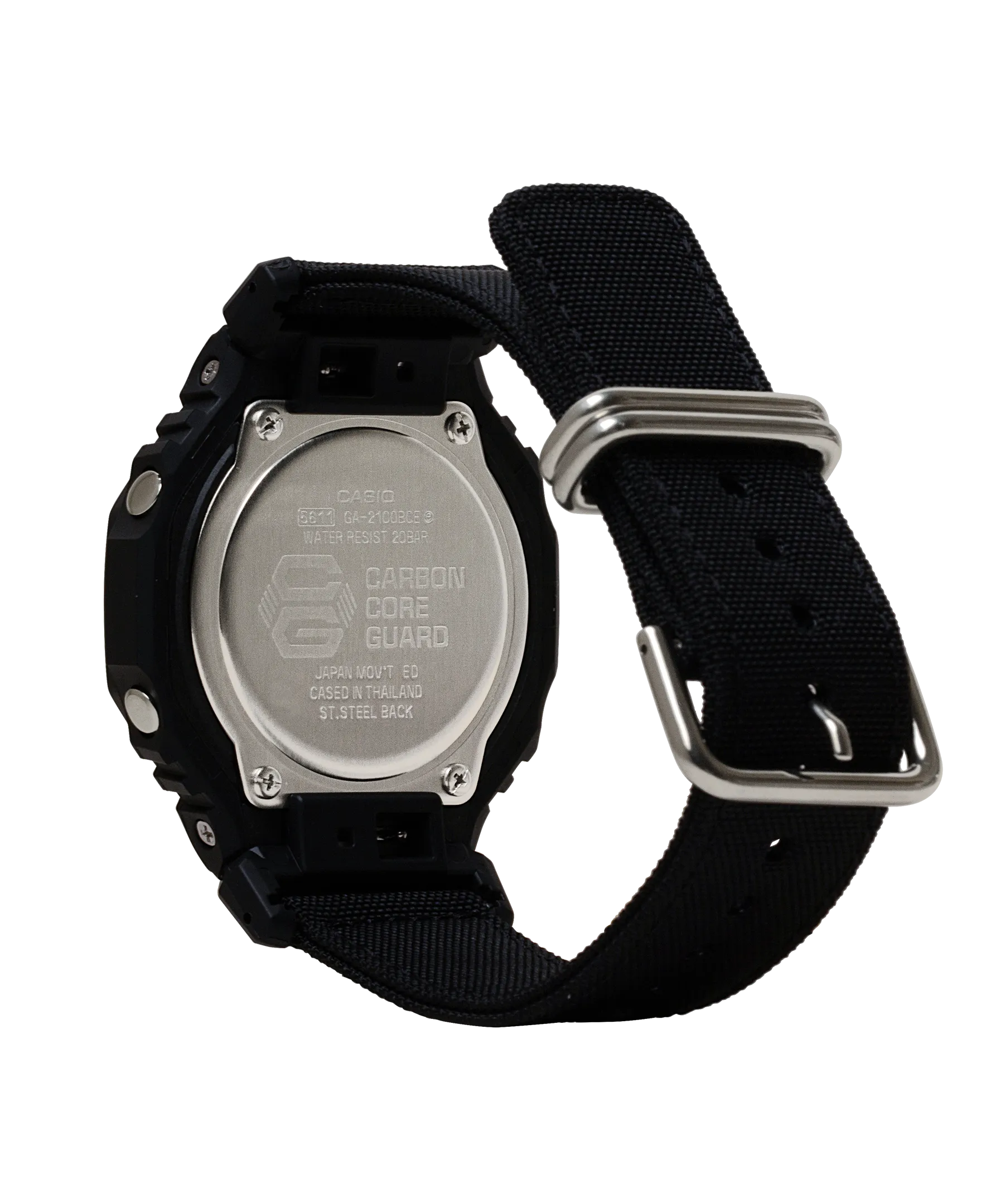 سری GA-2100 با بزل هشتضلعی معروف خود، یکی از محبوبترین و پرفروشترین خانوادههای جیشاک محسوب میشود. این سری با حفظ DNA اصلی G-SHOCK یعنی مقاومت بالا، وزن سبک و طراحی مینیمال، توانسته مخاطبان زیادی را جذب کند. مدل GA-2100BCE-1ADR در همین چارچوب طراحی شده اما با اضافه شدن بند پارچهای و ظاهر کاملاً مشکی، حس کاربردیتر و مدرنتری به خود گرفته است.