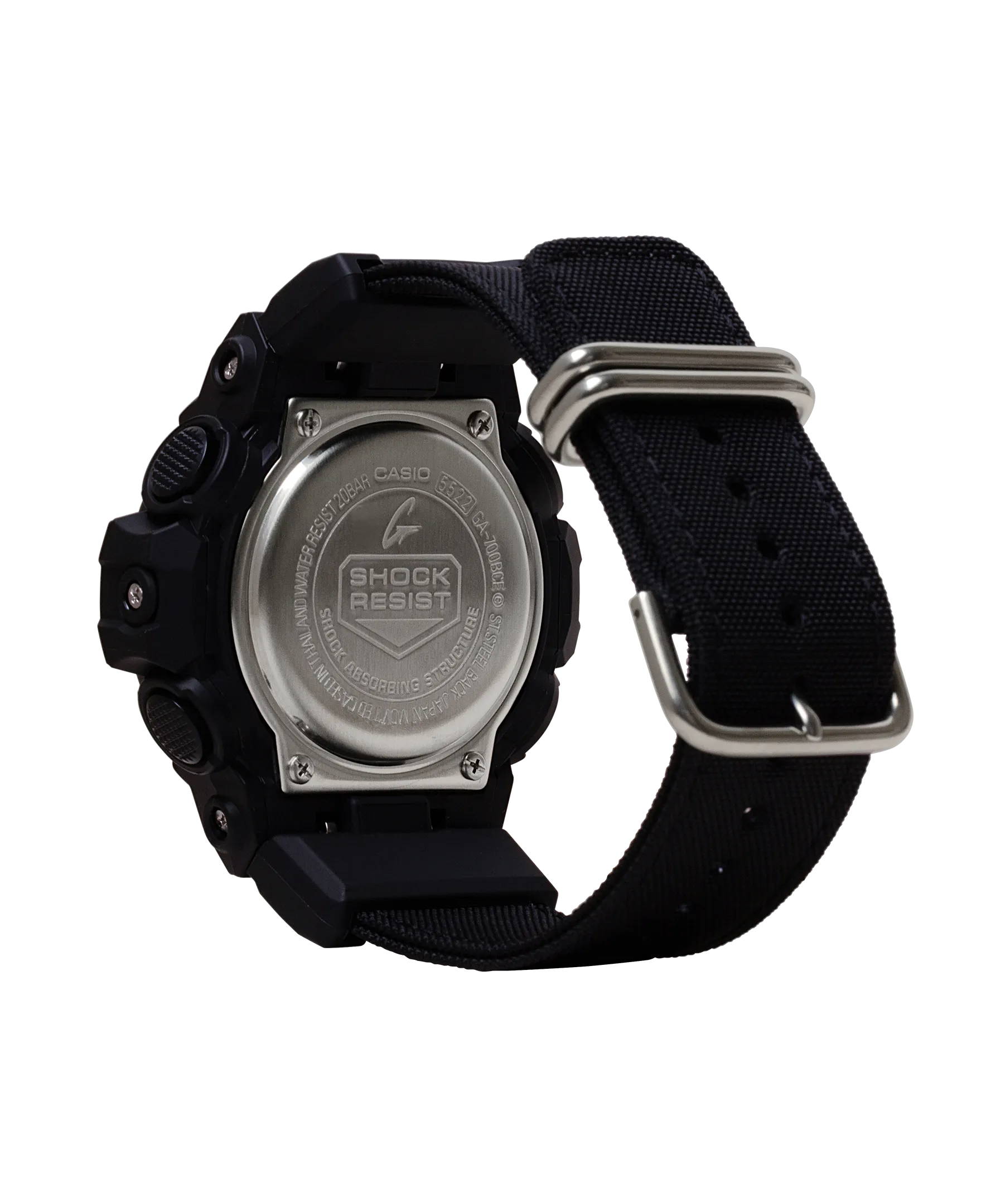 ساعت کاسیو G-SHOCK مدل GA-700BCE-1ADR یکی از مدلهای شاخص سری GA-700 است که طراحی تماماً مشکی و مینیمال را با سبک خیابانی و طبیعتدوستانه ترکیب کرده است. بند این ساعت از پارچه Cordura مقاوم و دوستدار محیطزیست ساخته شده که استایل اسپرت و کاربردی را با دوام بالا ارائه میدهد. این مدل برای کسانی که به دنبال ساعت کاسیو مردانه با طراحی شیک، مقاوم و قابل استفاده در محیطهای مختلف هستند، گزینهای ایدهآل است.
