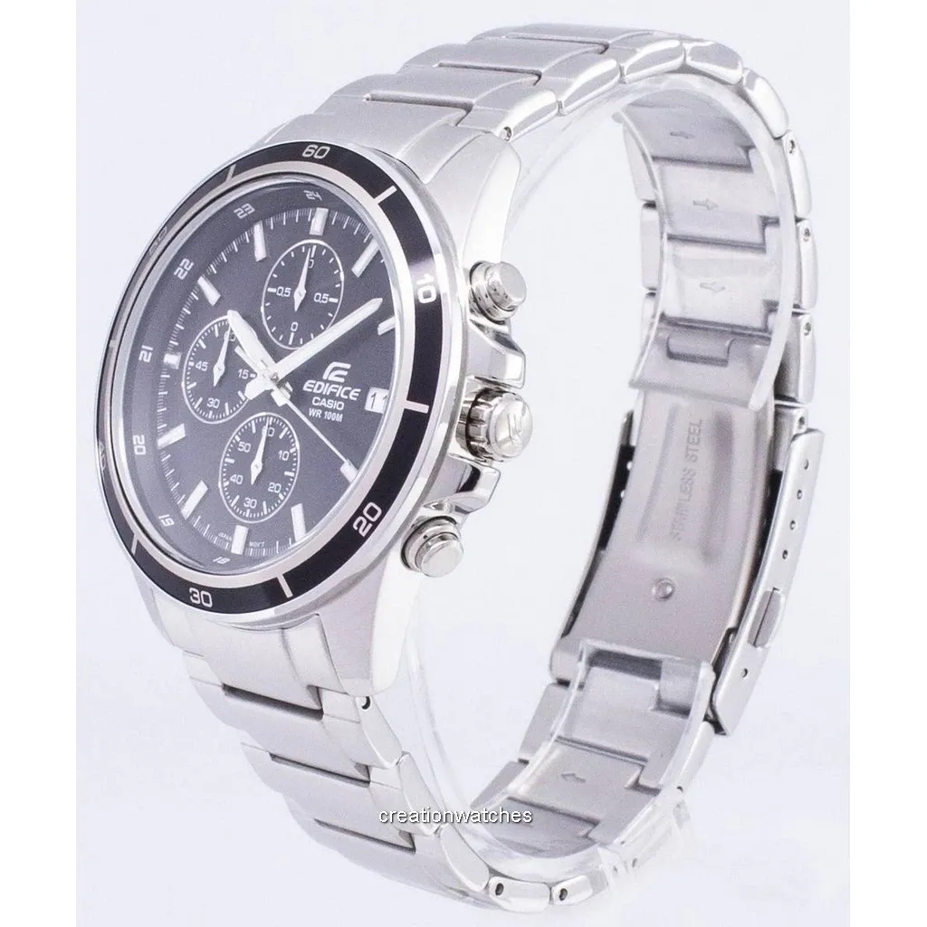 در اولین نگاه، صفحهی مشکی این ساعت با خطوط ظریف نقرهای و سه زیرصفحهی کرونوگراف، جلوهای حرفهای و در عین حال ساده داره. این ترکیب رنگی همیشه شیک و ماندگاره و بهراحتی با هر نوع استایلی هماهنگ میشه — از تیپ روزمره گرفته تا پوشش رسمی. قاب و بند تمام استیل صیقلی، حس یک ساعت لوکس و مقاوم رو منتقل میکنن. پرداخت براق بدنه در کنار بافت برسخورده بند، تضاد چشمنوازی ایجاد کرده که باعث شده مدل EFR-526D-1AVUDF روی مچ، هم محکم و هم باوقار به نظر بیاد.