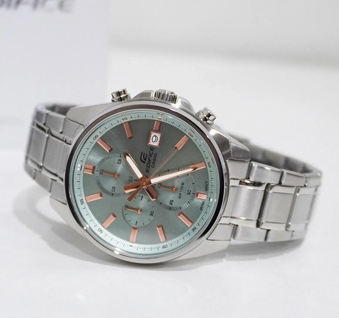 ساعت EFV-610DE-3A برای افرادی طراحی شده که به استایل اسپرت-کلاسیک علاقه دارند. رنگ سبز خاص صفحه با جزئیات رزگلد، حس شیک و خاص بودن را در کنار سادگی حفظ می‌کند. این ساعت هم برای موقعیت‌های رسمی مثل جلسات کاری مناسب است و هم برای استفاده روزمره یا تفریحی.