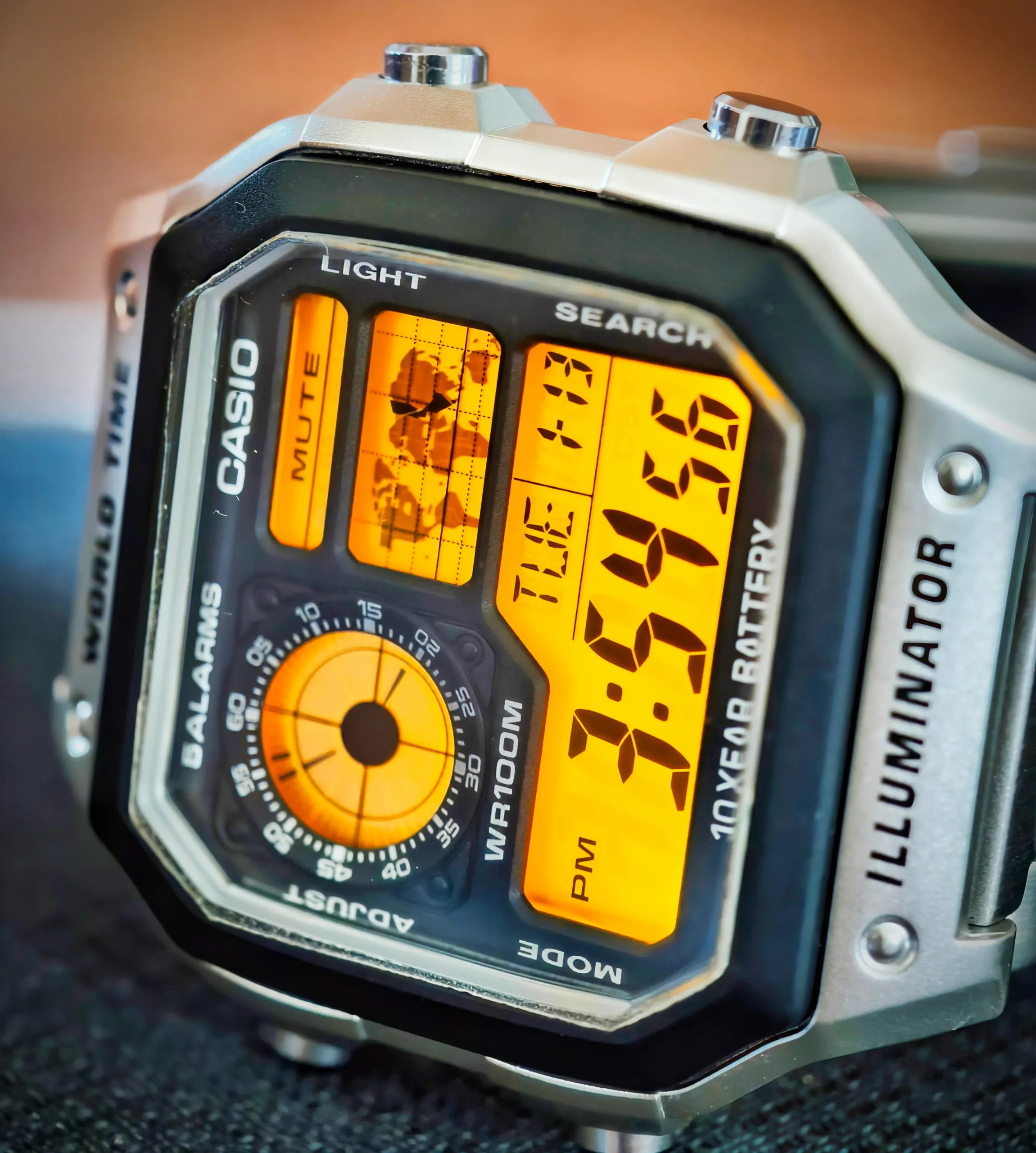 مقاومت در برابر آب تا عمق ۱۰۰ متر: ساعت AE-1200WHL-5AV مقاومت بالایی در برابر آب دارد و میتواند فشار ناشی از شنا، دوش گرفتن یا باران را تحمل کند. این ویژگی خیال کاربر را از آسیب دیدن ساعت در شرایط روزمره و فعالیتهای آبی راحت میکند.